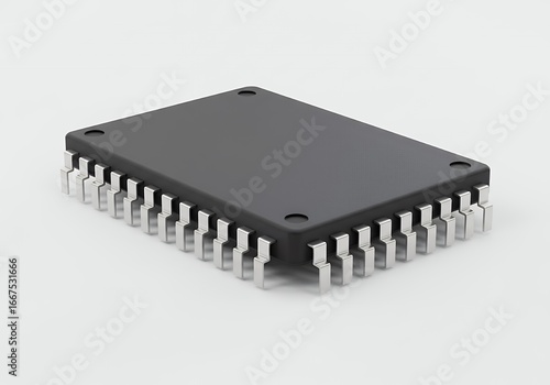 Modern computer microchip with metallic pins on a clean white background symbolizing technology