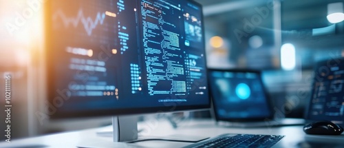 Modern computer workspace with data analysis.
