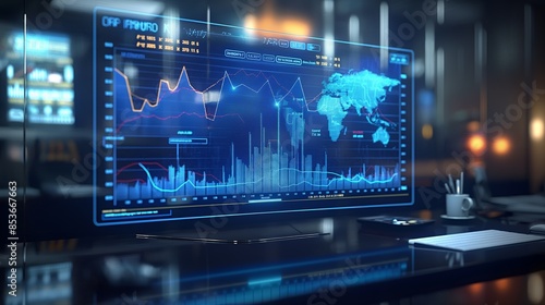 Modern Data Analytics Workspace With Interactive Digital Charts and a Futuristic Interface