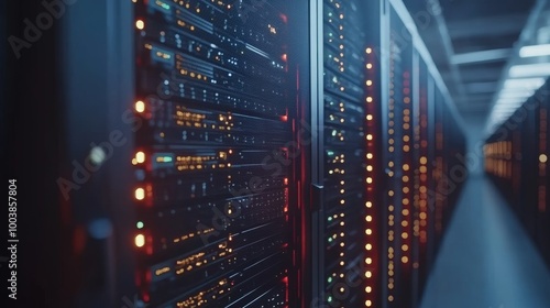 Modern Data Center With Rows of Network and Server Racks, IT Infrastructure, Big Data Concept.