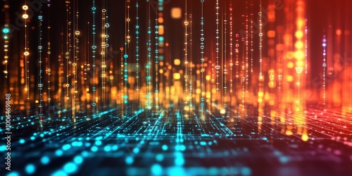 Modern Digital Abstract 3D Background with Holographic Data Points Floating in a Matrix, Symbolizing Global Data Analytics and Big Data Applications