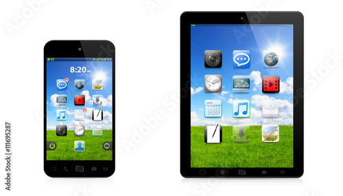 Modern digital phone and tablet on white background