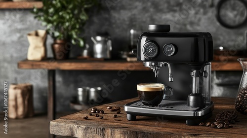 Modern Espresso Machine on Rustic Kitchen Counter