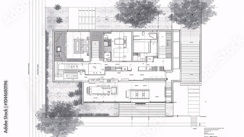 Modern House Floor Plan with Outdoor Patio and Landscaping