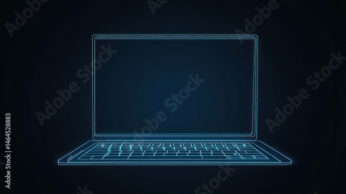 Modern laptop design, outlined in glowing light