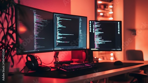 Modern office computer setup with AI generated illustration