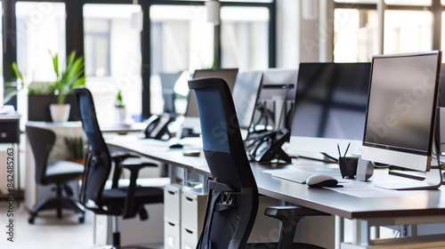 Modern Open Office Workspace with Computers