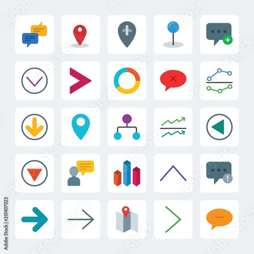 Modern Simple Set of location, arrows, charts, chat and messenger Vector flat Icons. .Contains such Icons as network, airplane, double and more on gray background. Fully Editable. Pixel Perfect