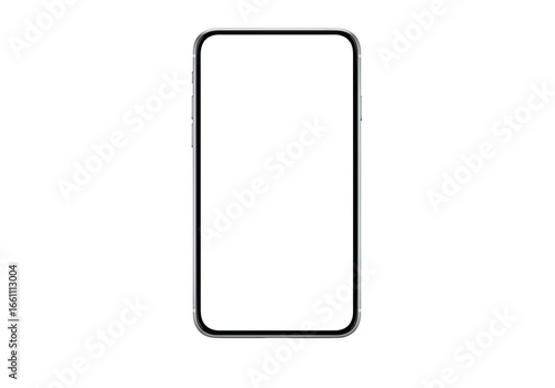 Modern smartphone with a blank white screen, ready for customization, isolated on transparent background