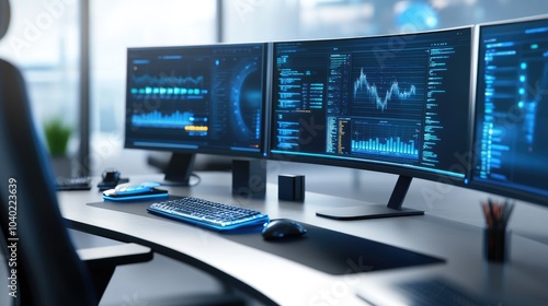 Modern Tech Workspace with Sleek Monitors