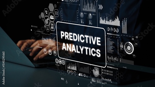 Modern Technology Interface Featuring Predictive Analytics Concept with Data Visualizations and Graphs. Asymptotic smart data analytic.