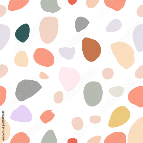 Modern Terrazzo Seamless Pattern. Soft Stone Chips Tile Texture. Minimal Abstract Floor Surface Design. Clean Terrazzo Mosaic Background.