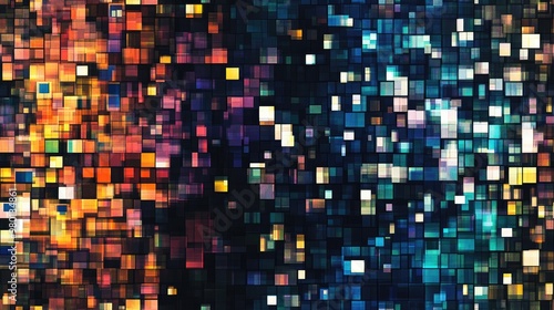 Modern urban abstract futuristic technology mosaic pattern in dark and colorful hues ideal for presentations and brochures
