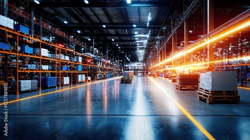 Modern Warehouse Interior Industrial Logistics Storage Facility Bright Lighting Clean Floor