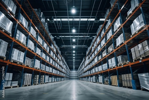Modern warehouse structure Logistics efficiency. streamlined distribution Organized storage facility