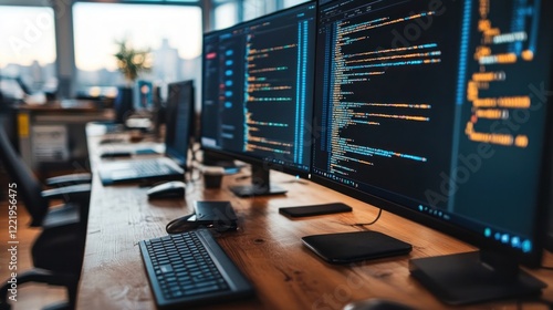 Modern Workplace: Programmers Coding on Multiple Monitors