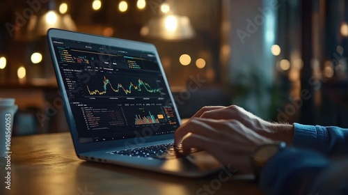 Modern Workspace with Laptop and Data Analysis Display