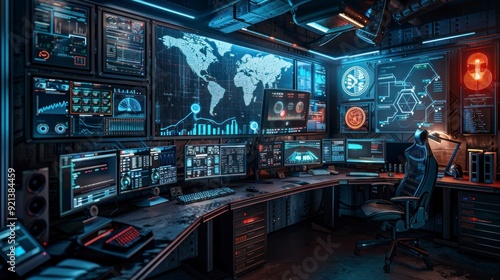 Modern workspace with multiple screens, representing digital productivity and multitasking.