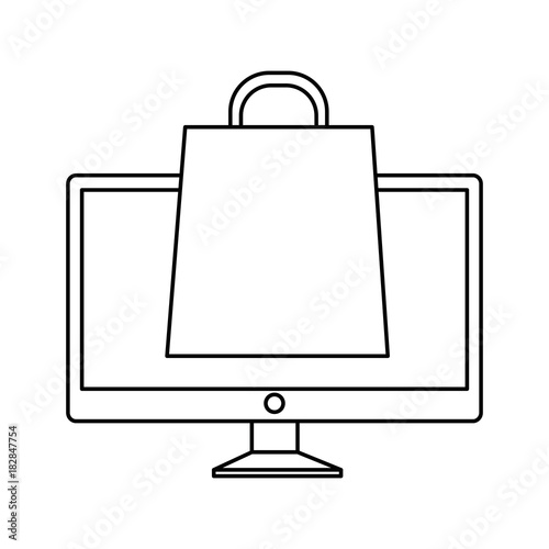 monitor computer with shopping bag vector illustration