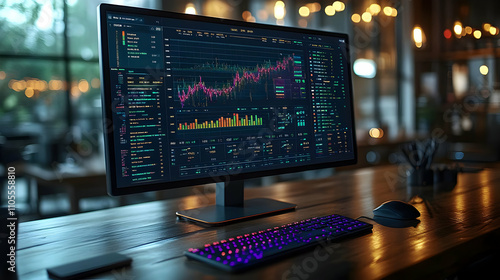 Monitor Displays Stock Market Data, Charts, and Trends Efficiently