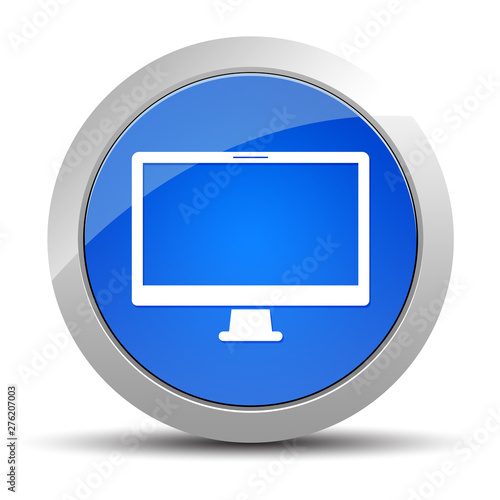 Monitor icon blue round button illustration
