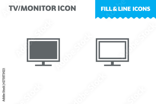 Monitor icon, vector. Fill and line. Flat design. Ui icon