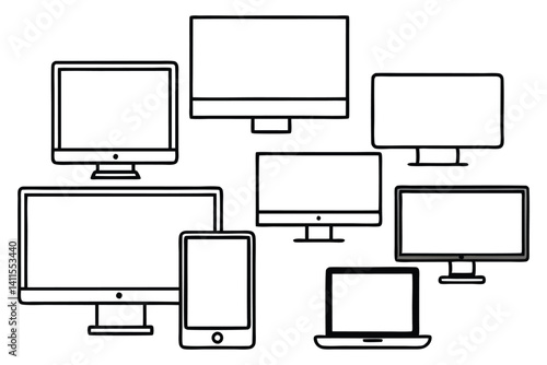 monitor line art clean outline for tech posters