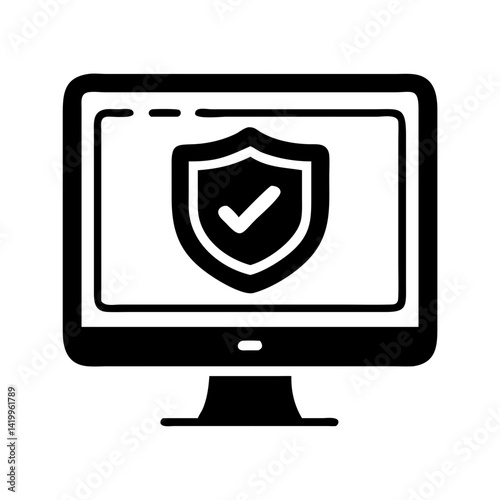Monitor with Shield Icon Representing Web Security and Online Protection