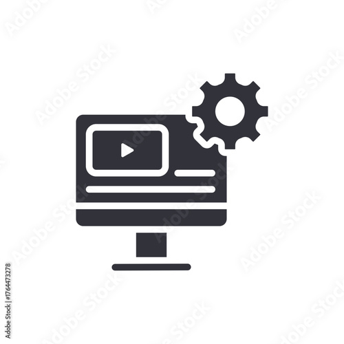 Monitor With Video And Gear Flat Technical Setup Icon