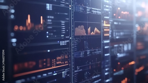 Monitoring dashboard with real-time data analytics, graphs, and indications of system health displayed on a computer monitor.