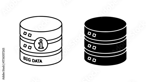 Monochromatic Outline and Solid Cylindrical Database Icons, Big Data Concept