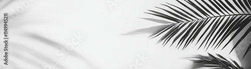 Monochrome palm leaf shadows on white background.