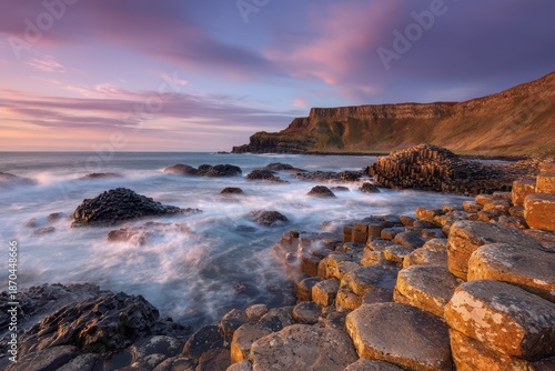 Moody Coastal Sunset Among Weathered Basalt Columns