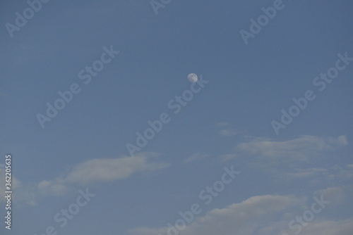 Moon and cloud on blue sky.