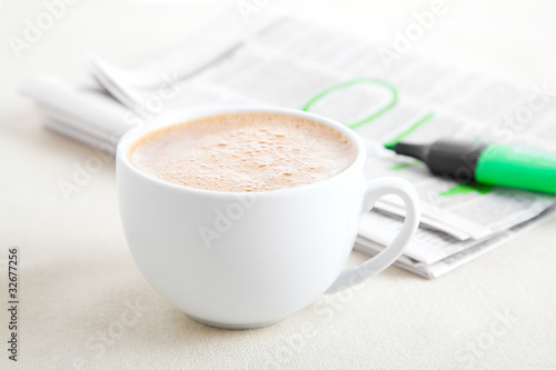 Morning coffee with newspaper