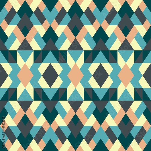 Mosaic seamless texture. Abstract pattern. Vector geometric background of triangles in yekiw and blue colors