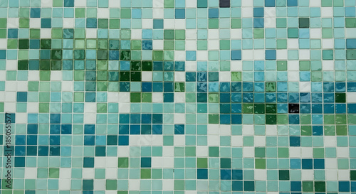 mosaic tiles blue green pattern ceramic background.