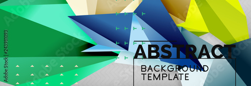 Mosaic triangular 3d shapes composition, geometric modern background. Triangles and polygons design