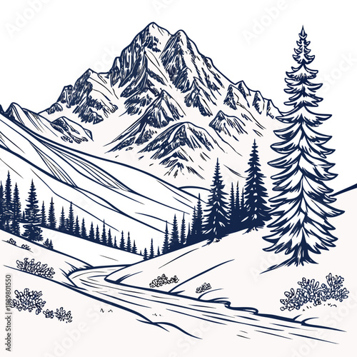 Mountain landscape with pine trees