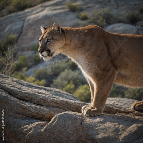 Mountain Lion Observing from a Rocky Outcrop