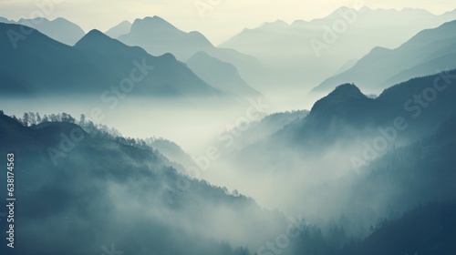 mountain range obscured by haze, showcasing the effects of air pollution generative ai