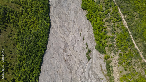 Mountain Valley after Rock and Ice Slide. Aerial View