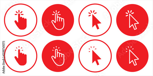 Mouse click cursor set. Hand Cursor. Click icon. Mouse pointer set. Arrow cursor. Vector illustration. EPS 10