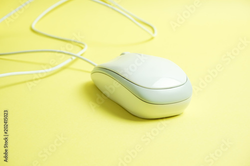 Mouse for the PC with the cord. コードのついたパソコンのマウス 黄色背景