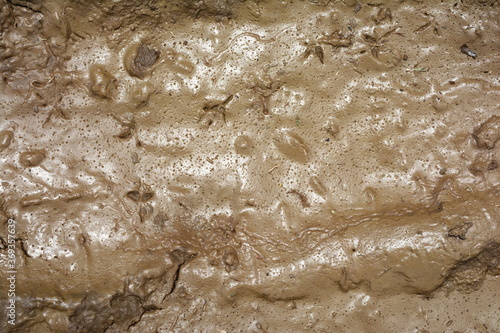 Mud texture or wet brown soil as natural background.