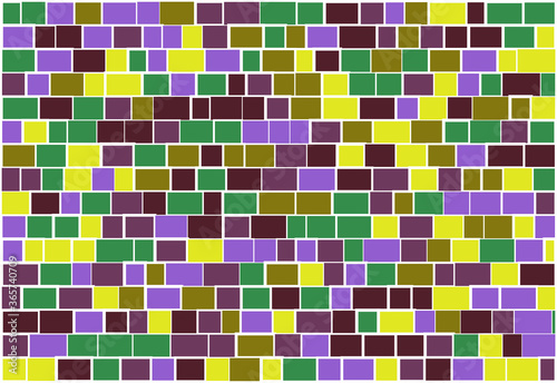 Multicolor brick wall from nested rectangles vector background with six different colors, mosaic pattern with random white borders, useful for backgrounds, wallpapers and wrapping