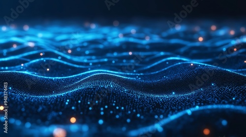 Multicolor glowing data over abstract digital landscape. Based on Generative AI