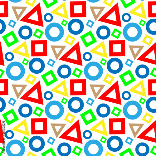 Multicolored geometric shapes on a white background. Seamless pattern. Vector drawing.