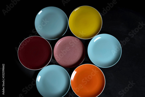 Multi-colored plates on a isolated black background.