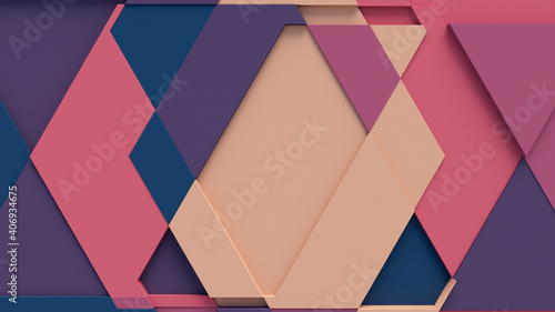 Multicolored tech background, with a geometric 3D structure. Clean, pastel colored design with simple, modern forms. 3D render
